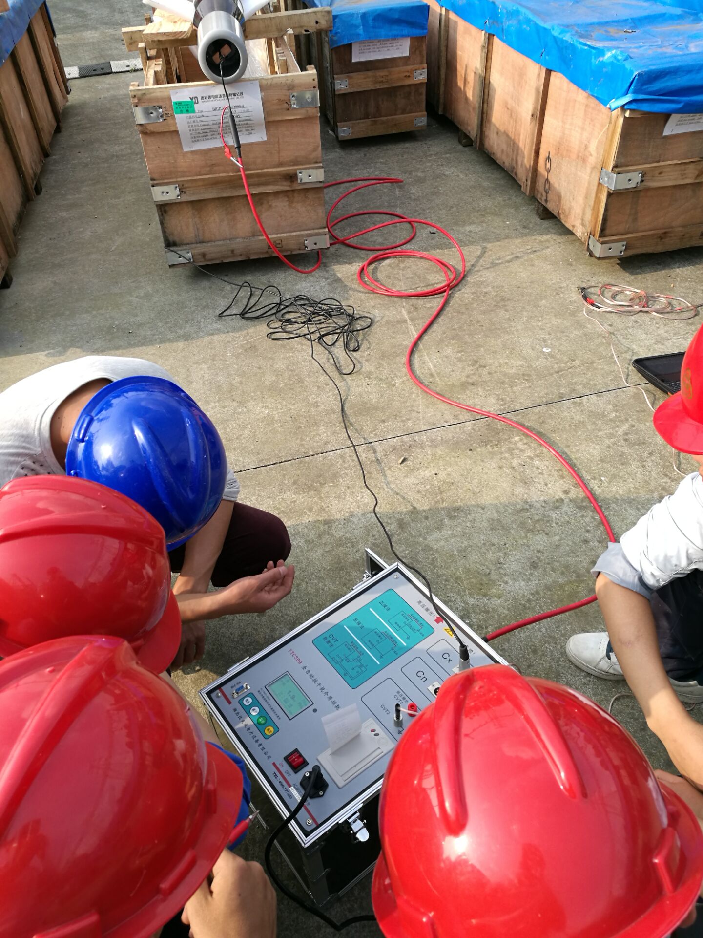 在現(xiàn)場,李工首先對設(shè)備進行了簡單的檢查看看設(shè)備是否有損壞,之后開始了對設(shè)備的培訓(xùn)。此次培訓(xùn)的設(shè)備和內(nèi)容很多。李工對各項設(shè)備的使用,接線方法進行了實地操作和詳細(xì)的講解,并對客戶提出疑問的地方,現(xiàn)場給予細(xì)心,準(zhǔn)確的解答。客戶理解能力比較強,在設(shè)備培訓(xùn)過程中有的同事就已經(jīng)基本掌握了設(shè)備的操作,隨后,又與客戶一起到現(xiàn)場對被試品進行了試驗。