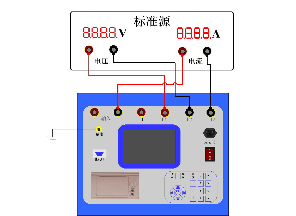 2)接線圖:測試儀與標準源的接線圖如下: