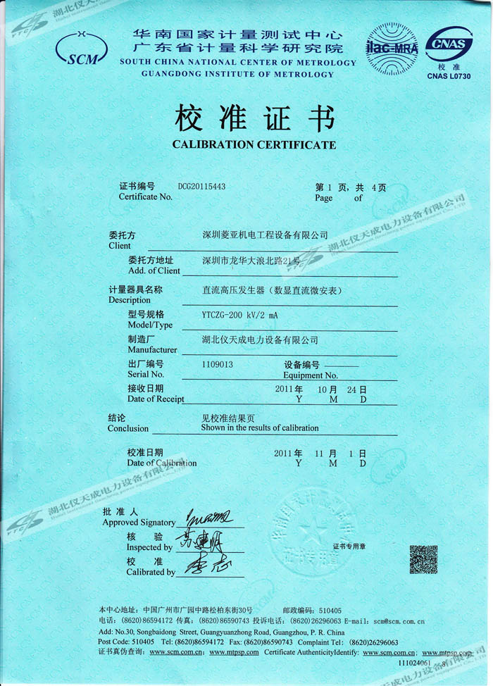 轉(zhuǎn)載:"YTCZG-200kV2mA直流高壓發(fā)生器的資質(zhì)證書" 請(qǐng)注明來源于儀天成電力。 更多技術(shù)問題請(qǐng)致電儀天成電力客戶服務(wù):027-87876585,技術(shù)部專線:027-87876585,在線客服:719388481