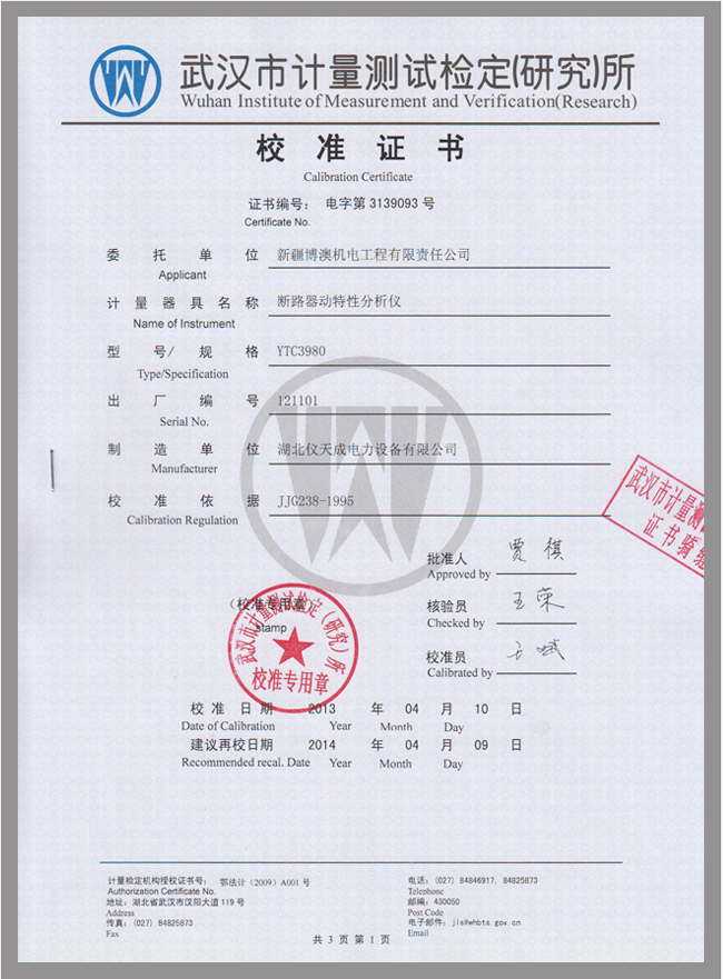 上一篇:YTC3970高壓開關動特性測試儀鑒定證書 下一篇:3980A斷路器動特性分析儀鑒定證書